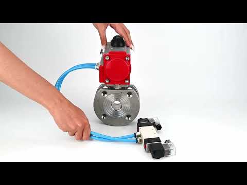 Vannes à boisseau sphérique Elephant BV3232P-FP-Fb-ISO-H 16 bar, passage intégral entre brides, acier inoxydable SS316, joint - PTFE, avec actionneur pneumatique double effet PA-DA, avec distributeur pneumatique 4V320-08 220V