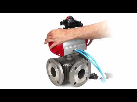 Ball valves Elephant BV3232P(4pc)-FP-3WL-F-ISO-H 16 bar full bore, flanged, body - stainless steel SS316, ISO flange F03/F04-F10/F12, square 9x9-19x19, with pneumatic drive PA-SA, pneumatic valve 4V320-8 220V and LSU APL-210N