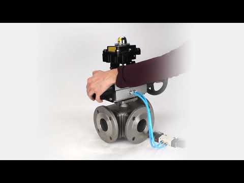 Ball valves Elephant BV3232P(4pc)-FP-3WL-F-ISO-H DN100 16 bar full bore, flanged, body - stainless steel SS316, ISO flange F10/F12, square 19x19, with double pneumatic actuator PA-DA-105-1 action, pneumatic distributor 4V320-8 220V and LSU APL-210N