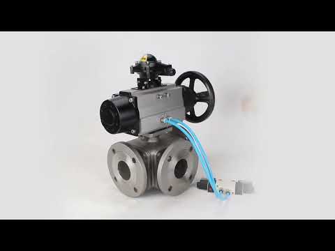 Ball valves Elephant BV3232P(4pc)-FP-3WL-F-ISO-H DN100 16 bar full bore, flanged, body - stainless steel SS316, ISO flange F10/F12, square 19x19, with double pneumatic actuator PA-DA-105-1 action, pneumatic distributor 4V320-8 220V and LSU APL-410N EX