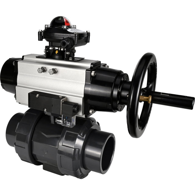 Ball valves Elephant BV4242E-FP-GRM-ISO, body material - UPVC, ball material - UPVC, seal - EPDM, with pneumatic actuator double action PA-DA-105-1, pneumatic distributor 4M310-08 220V and LSU APL-210N