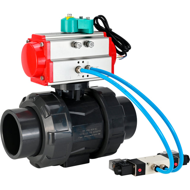 Ball valves Elephant BV4242E-FP-GRM-ISO, body material - UPVC, ball material - UPVC, seal - EPDM, with pneumatic actuator double action PA-DA, pneumatic distributor 4V320-08 220V and magnetic switch ALS200D