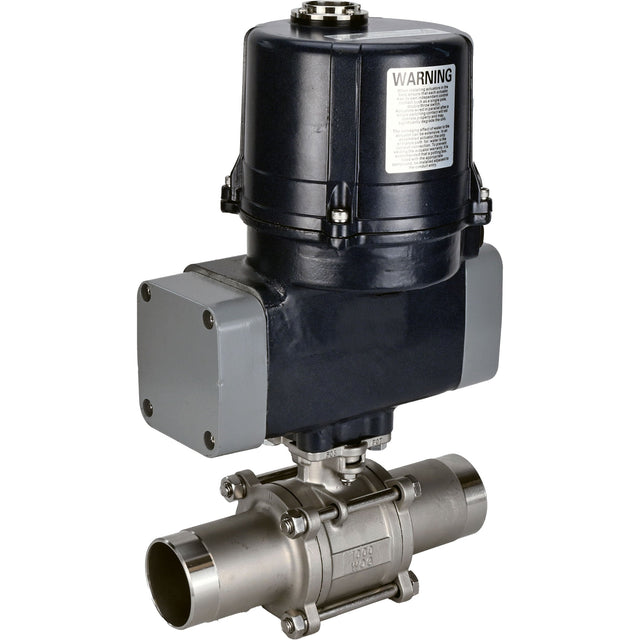 Ball valves Elephant BV3232P(3pc)-FP-W-ISO-H LONG full bore, welded, body - SS316 stainless steel, seal - PTFE, with electric quarter turn actuator Elephant QTSA-N-EM-O0-220VAC