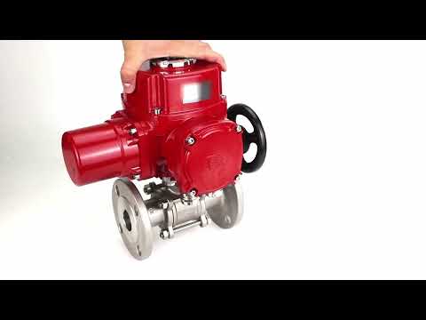Válvula de bola de acero inoxidable Elephant BVFPT.304.180 de tres piezas, material del cuerpo - acero inoxidable SS304, sello - PTFE, brida, paso completo, actuador eléctrico de cuarto de vuelta Elephant QT-W (M) EX 220 V