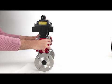 Válvula de bola de acero inoxidable Elephant BVFPT-ISO.316.180 de tres piezas, material del cuerpo: acero inoxidable SS316, junta: PTFE, brida, paso completo, actuador neumático Elephant DA, bloque de interruptores de límite APL-410N EX
