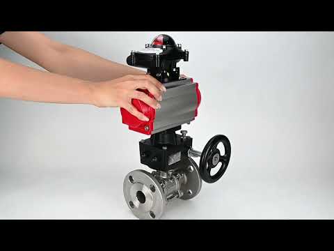 Válvula de bola de acero inoxidable Elephant ksfpt-304-180-da-apl210n-hdm, material del cuerpo - acero inoxidable AISI 304, material de la bola - acero inoxidable AISI 304, sello - PTFE, actuador neumático operado