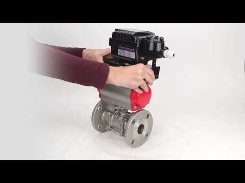 Válvula de bola de acero inoxidable Elephant ksfpt-304-180-sa-yt1000rsn, material del cuerpo - acero inoxidable AISI 304, material de la bola - acero inoxidable AISI 304, sello - PTFE, actuador neumático operado