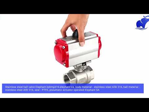 Válvula de bola de acero inoxidable Elephant kshmp316-elephant-sa, material del cuerpo - acero inoxidable AISI 316, material de la bola - acero inoxidable AISI 316, sello - PTFE, actuador neumático operado