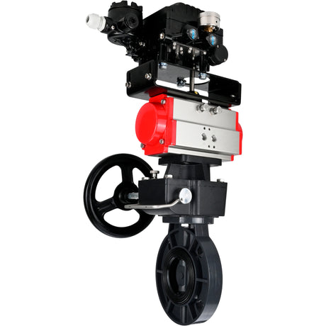 Butterfly valves Elephant WBV4242E-2W-Fb-ISO, body material - UPVC, disc material - UPVC, seal - EPDM, with pneumatic actuator double action PA-DA, LSU APL-410N EX and handwheel MON