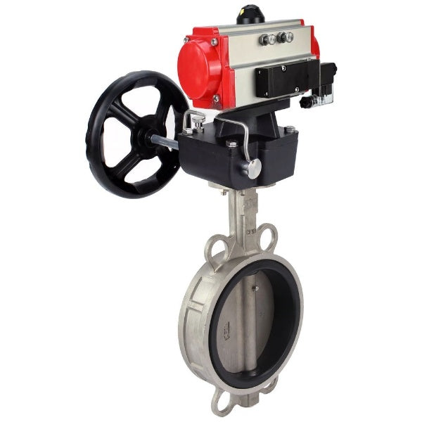 Butterfly valve Elephant WBV3232E-2W-Fb-H, body material - stainless steel AISI 316L, disk material - stainless steel AISI 316L, seal - EPDM, with pneumatic actuator double action PA-DA, 4V320-10 220V, handwheel MON