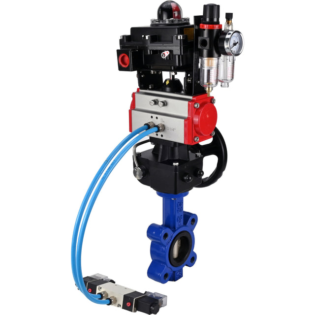 Butterfly valves WBV1616N-2W-Fb-H, body material - cast iron QT450, disk material - cast iron QT450, seal - NBR, pneumatic actuator PA-DA double action, 4V320-10 220V, LSU APL-410N EX, handwheel MON, ATU AFC2000