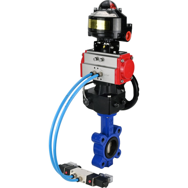 Butterfly valves WBV1616N-2W-Fb-H, body material - cast iron QT450, disk material - cast iron QT450, seal - NBR, pneumatic actuator PA-DA double action, 4V320-10 220V, LSU APL-510N EX, handwheel MON