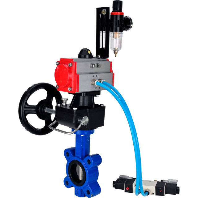 Butterfly valves WBV1631N-2W-Fb-H, body material - cast iron QT450, disk material - Stainless steel AISI 304, seal - NBR, pneumatic actuator PA-DA double action, 4V320-08 220V handwheel MON, ATU AFC2000