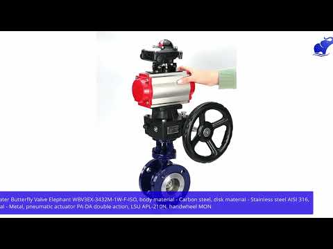 Vanne papillon d'eau Elephant WBV3EX-3432M-1W-F-ISO, matériau du corps - Acier au carbone, matériau du disque - Acier inoxydable AISI 316, joint - Métal, actionneur pneumatique PA-DA double action, BKV APL-210N, volant MON
