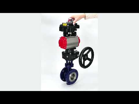 Vanne papillon d'eau Elephant WBV3EX-3432M-1W-F-ISO, matériau du corps - Acier au carbone, matériau du disque - Acier inoxydable AISI 316, joint - Métal, actionneur pneumatique PA-DA double action, BKV APL-410N EX, volant MON