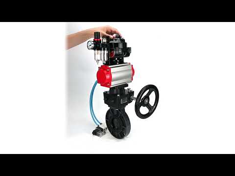 Butterfly valves Elephant WBV4242E-2W-Fb-ISO, body material - UPVC, disc material - UPVC, seal - EPDM, with pneumatic actuator double action PA-DA, pneumatic distributor 4V320-08 220V, LSU APL-510N EX, ATU AFC2000 and handwheel MON