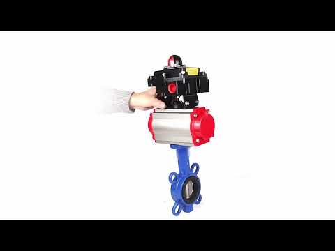 Válvula de mariposa de agua Elephant GG25-316L-NBR, material del cuerpo: fundición gris GG25, material del disco: acero inoxidable 316L, junta: NBR con actuador neumático DA, distribuidor neumático 4M310-08 220V y bloque de final de carrera APL-410N EX