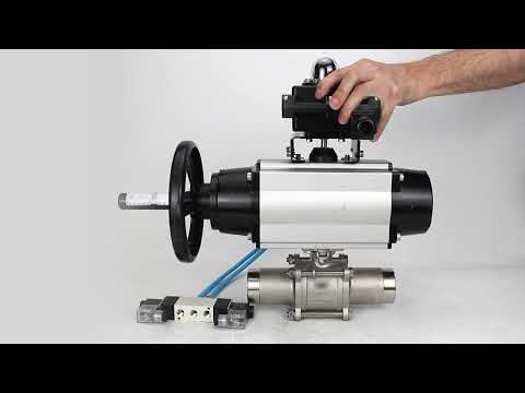 Ball valves Elephant BV3131P(3pc)-FP-W-ISO-H LONG, body material - Stainless steel AISI 304, seal - PTFE / PTFE / Teflon, with pneumatic actuator double action PA-DA-105-1, 4V320-10 220V, LSU APL-410N Ex