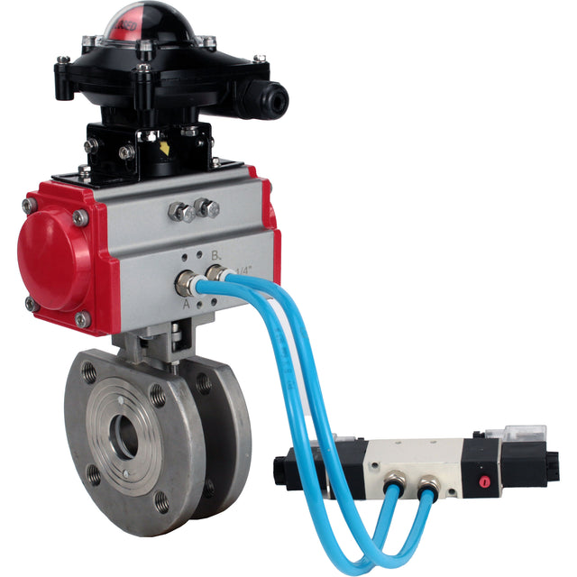 Vannes à boisseau sphérique Elephant BV3232P-FP-Fb-ISO-H 16 bar, passage intégral entre brides, acier inoxydable SS316, joint - PTFE, avec actionneur pneumatique double effet PA-DA, avec distributeur pneumatique 4V320-08 220V, avec BKV APL-210N