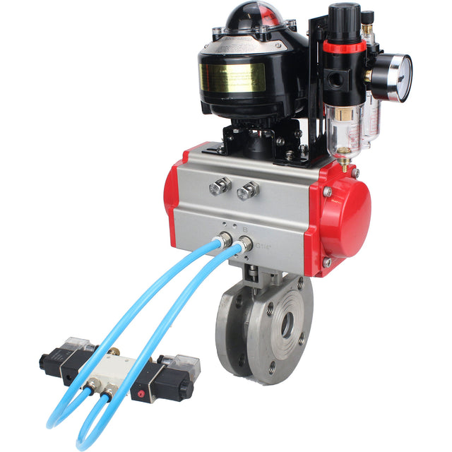 Vannes à boisseau sphérique Elephant BV3232P-FP-Fb-ISO-H 16 bar wafer, passage intégral, corps en acier inoxydable. acier SS316, joint - PTFE, avec actionneur pneumatique Elephant PA-SA 052-160 distributeur pneumatique 4V320-10 BPV AFC2000 APL-510N-EX
