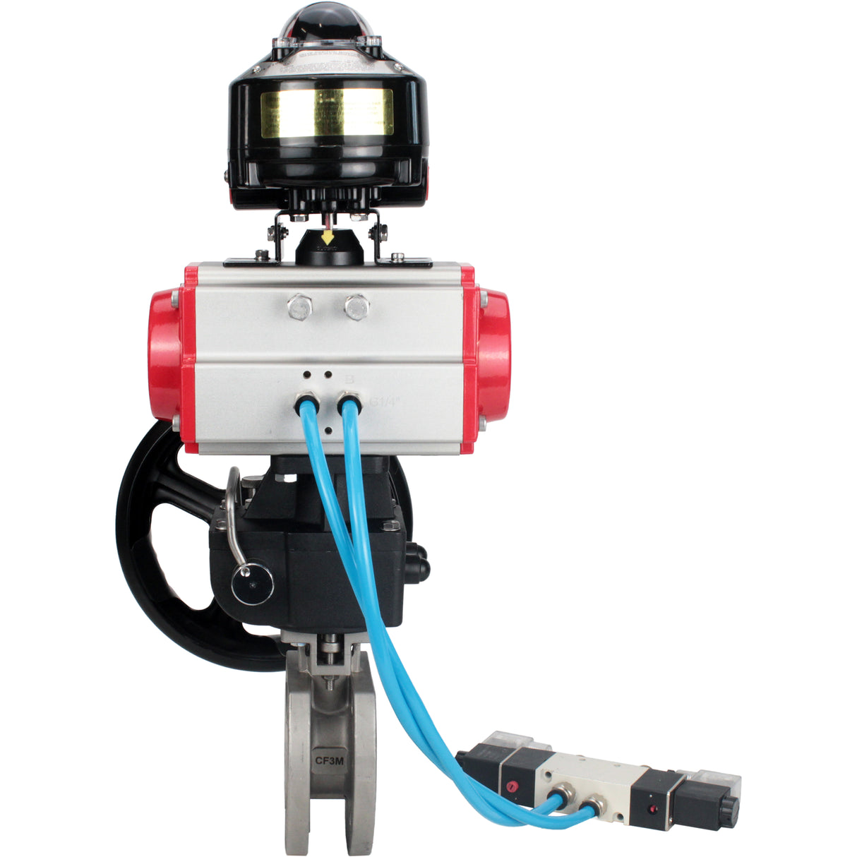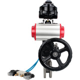 Ball valves Elephant BV3232P-FP-Fb-ISO-H 16 bar wafer, full bore, stainless steel body. steel SS316, seal - PTFE, with pneumatic drive Elephant PA-DA 052-105 pneumatic distributor 4V320-10 gearbox MON LSU APL-510N-EX