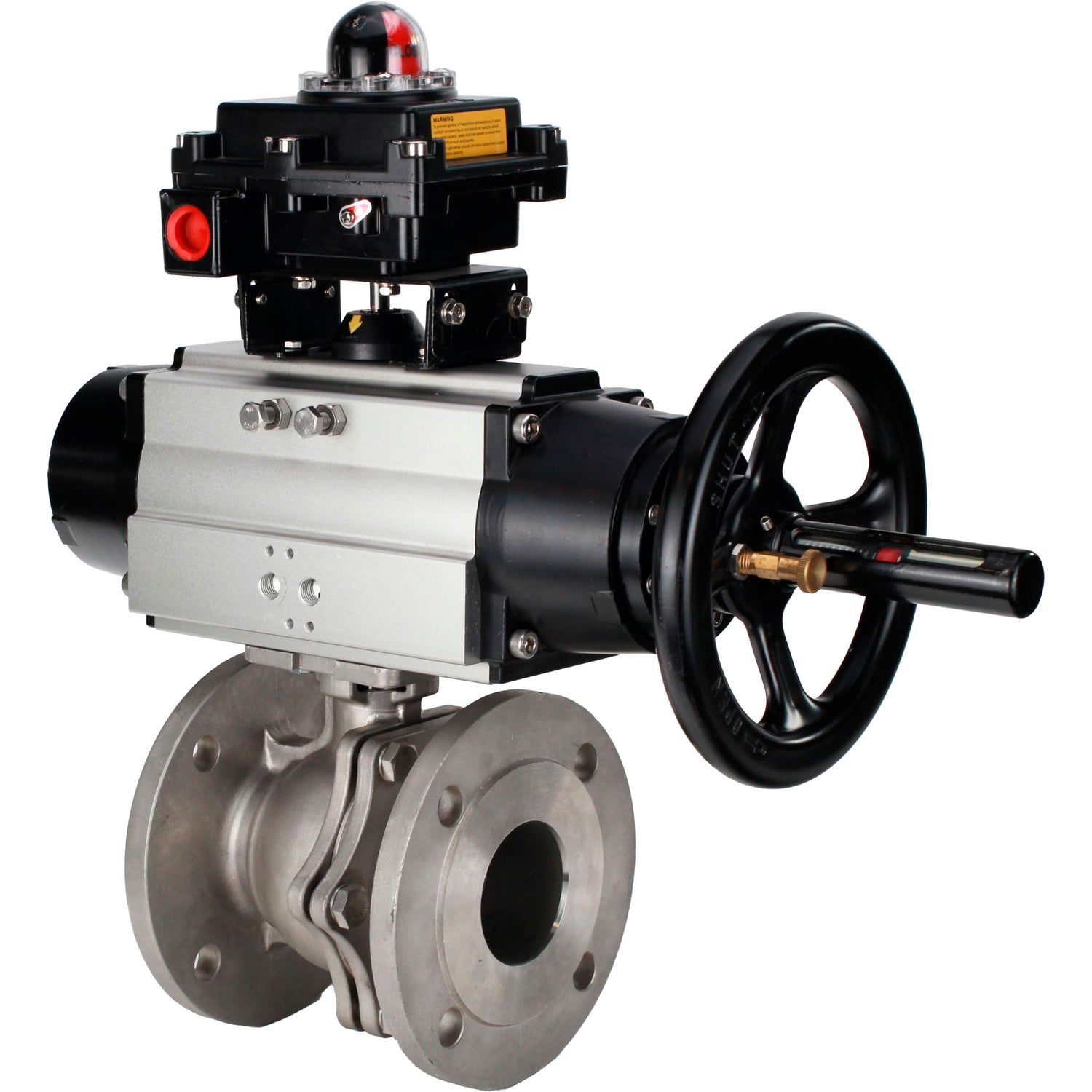Robinets à boisseau sphérique Elephant BV3232P(2pc)-FP-F-ISO-H DN80-100 16 bar à passage intégral à brides, corps - acier inoxydable 316, joint - PTFE, avec actionneur pneumatique Elephant PA-DA-105-1 et BKV APL-410N EX