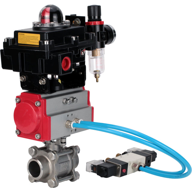 Ball valves Elephant BV3232P(3pc)-FP-W-ISO-H 16 bar/25, full bore for welding, stainless steel SS316, seal - PTFE, with double-acting PA-DA pneumatic actuator, with pneumatic distributor 4V320-10 220V, with LSU APL-410N EX, with ATU AFC2000 - DN10 / 63 bar está agotado y se enviará tan pronto como vuelva a estar disponible.