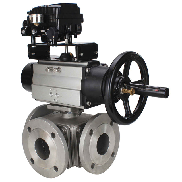 Ball valves Elephant BV3232P(4pc)-FP-3WL-F-ISO-H DN100 16 bar full bore, flanged, body - stainless steel SS316, ISO flange F10/F12, square 19x19, with double pneumatic actuator PA-DA-105-1 action and pneumatic positioner YT-1000RSN without feedback