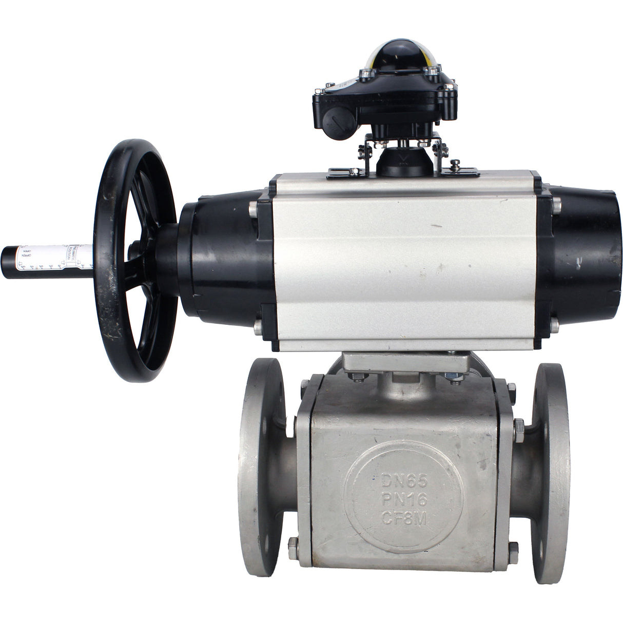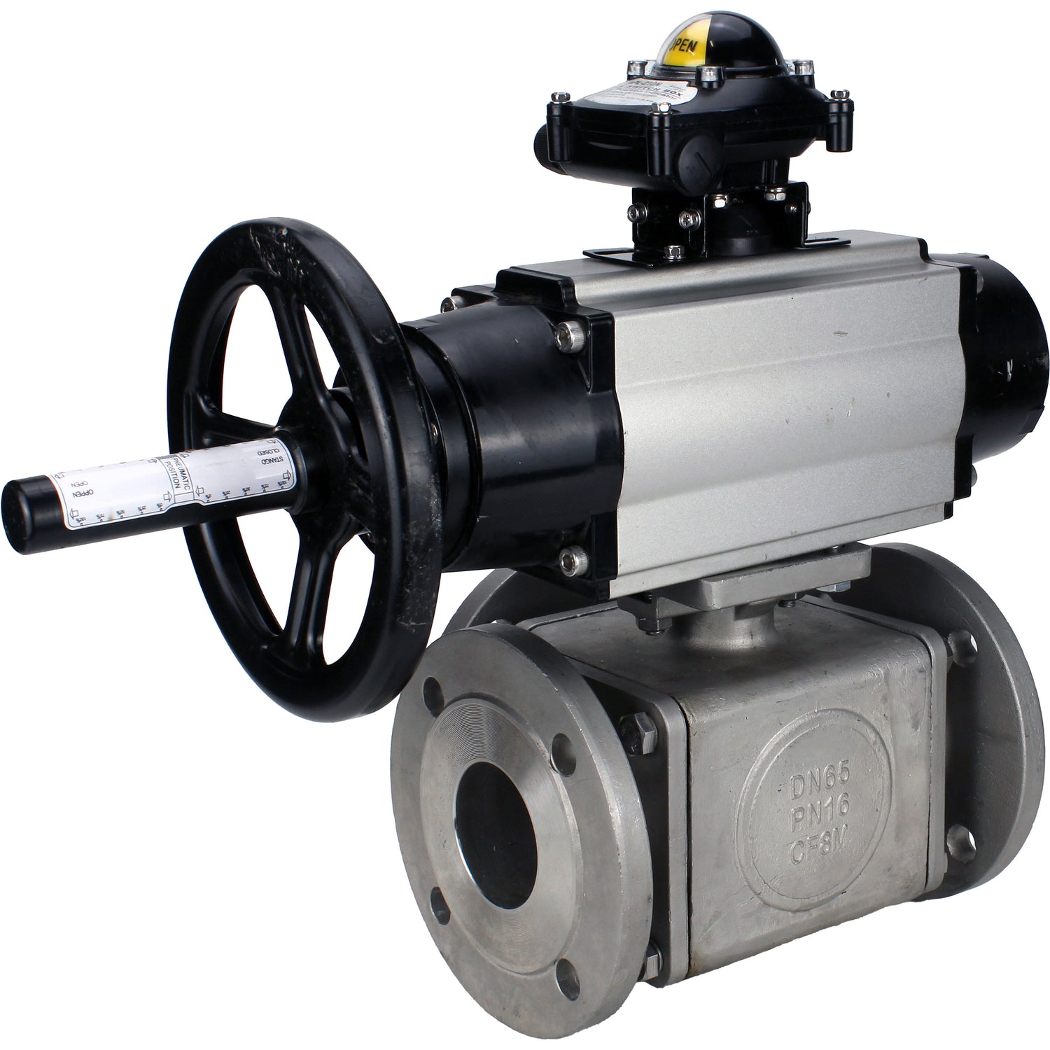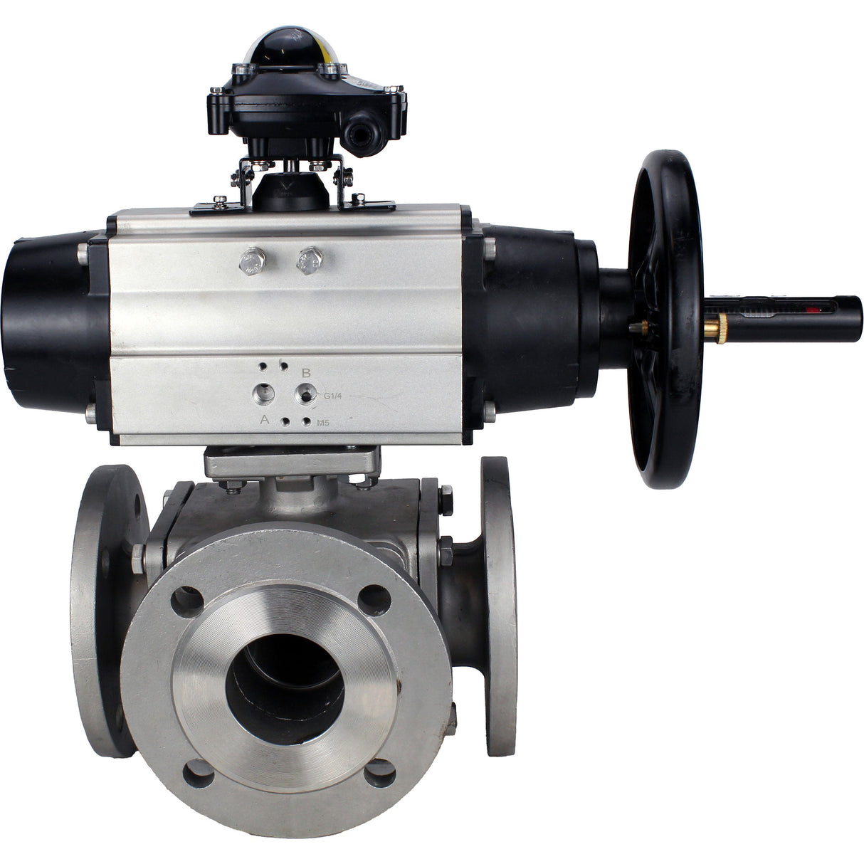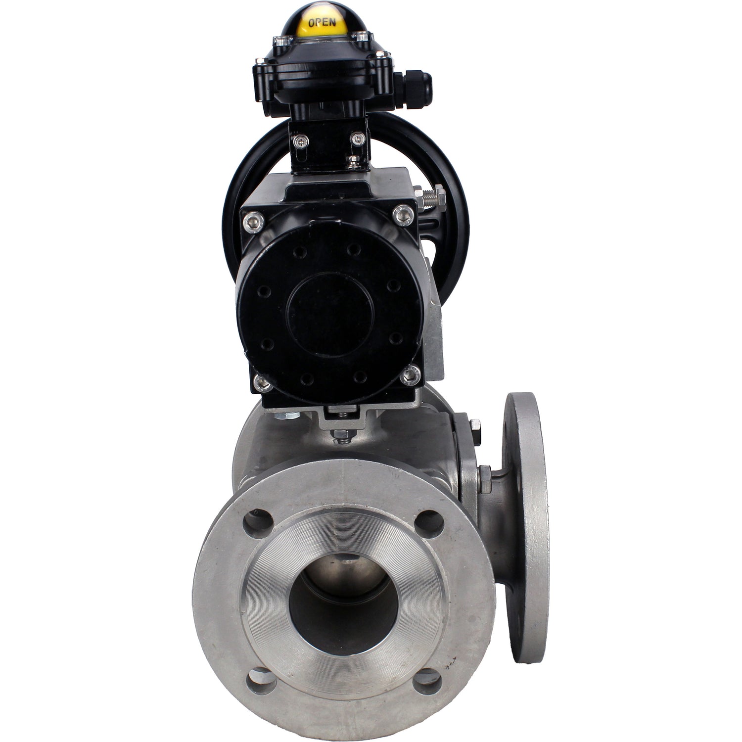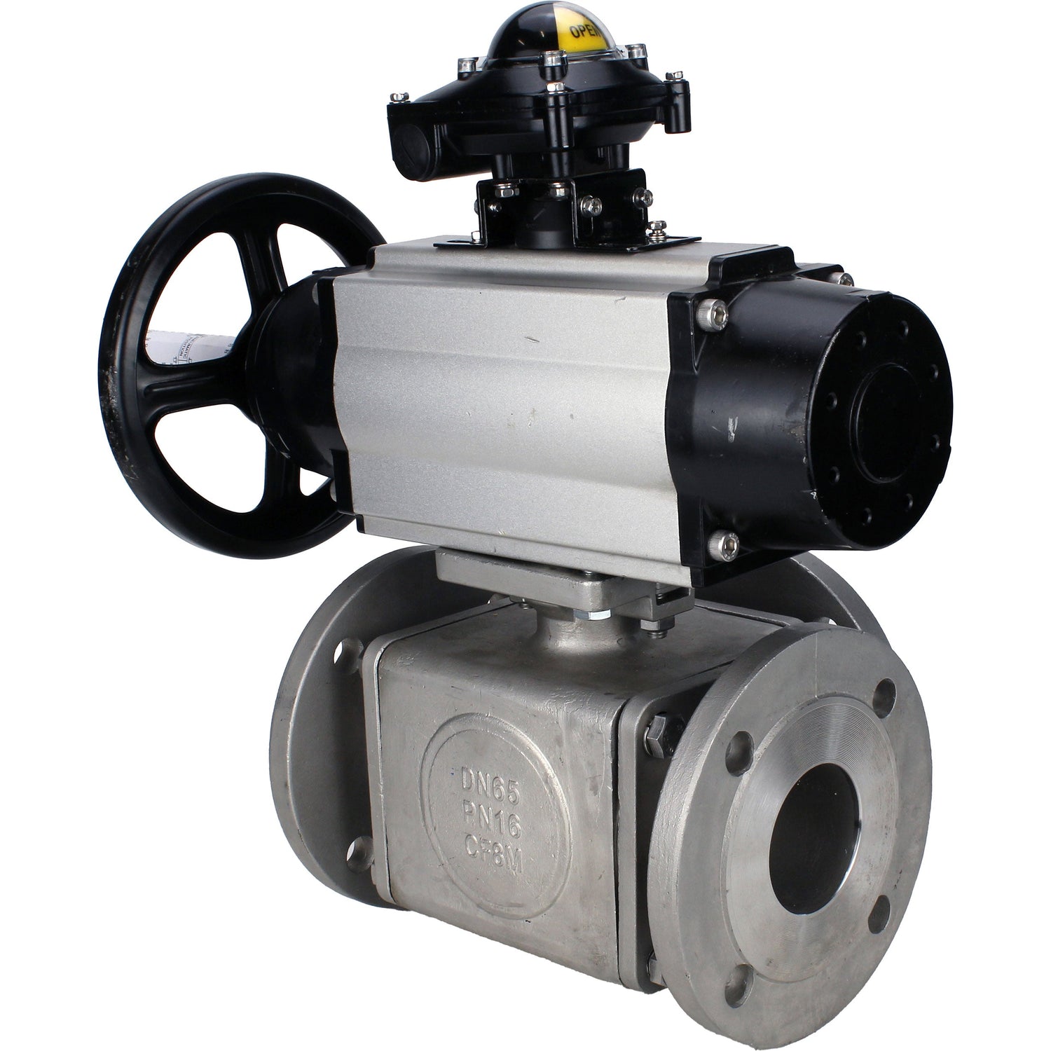 Robinets à boisseau sphérique Elephant BV3232P(4pc)-FP-3WL-F-ISO-H DN100 16 bar passage intégral, à brides, corps - acier inoxydable SS316, bride ISO F10/F12, carré 19x19, avec double actionneur pneumatique PA-DA-105-1 actions et BKV APL-210N