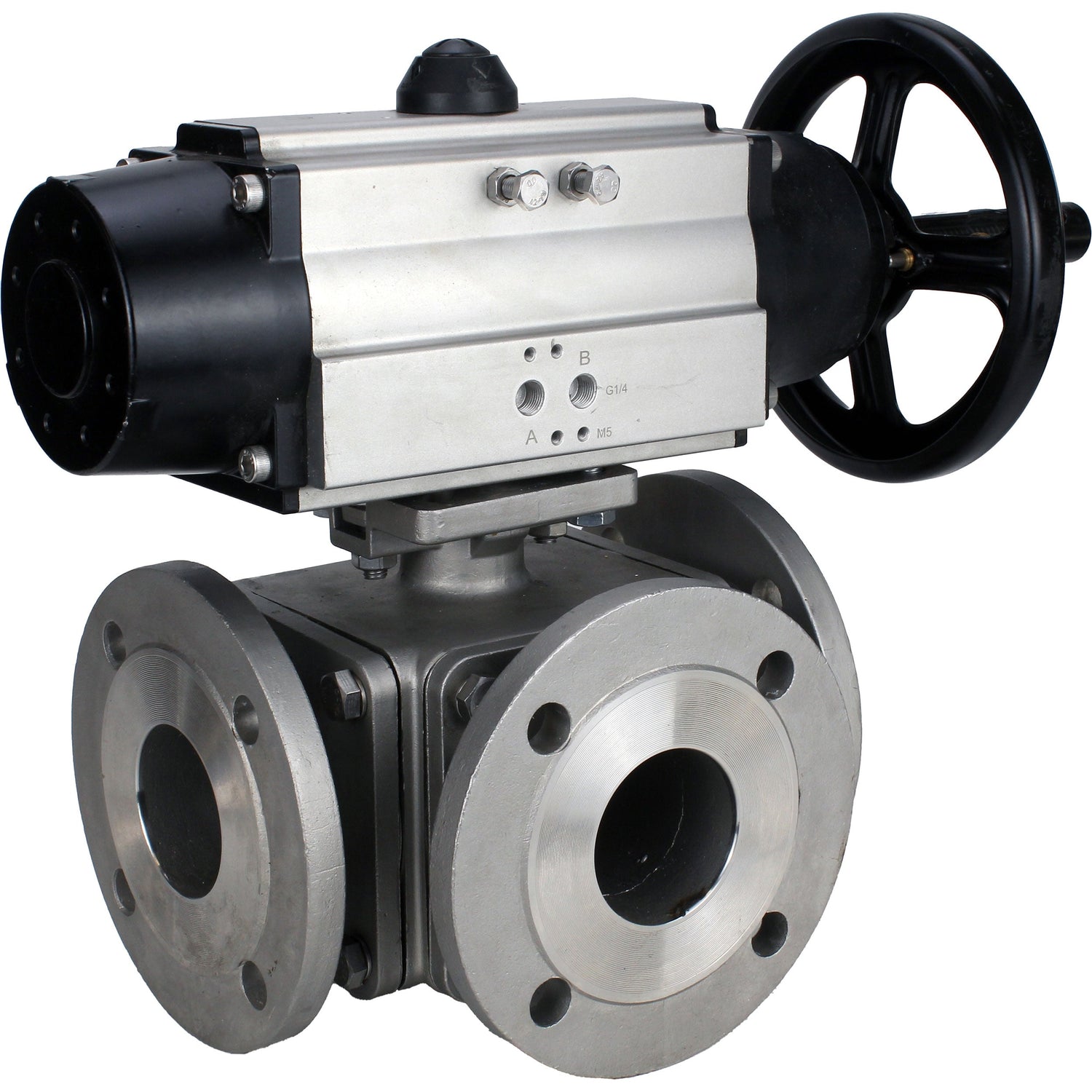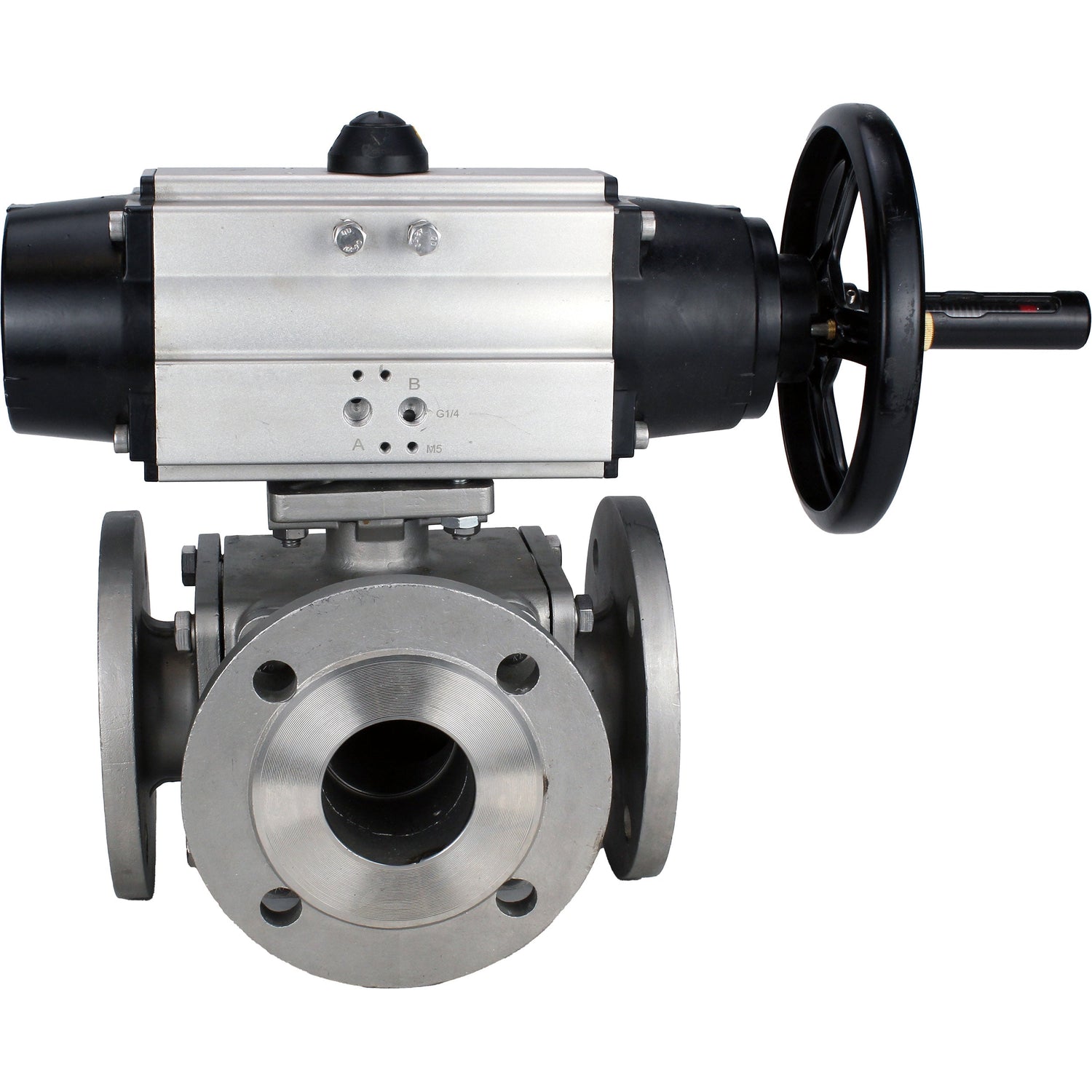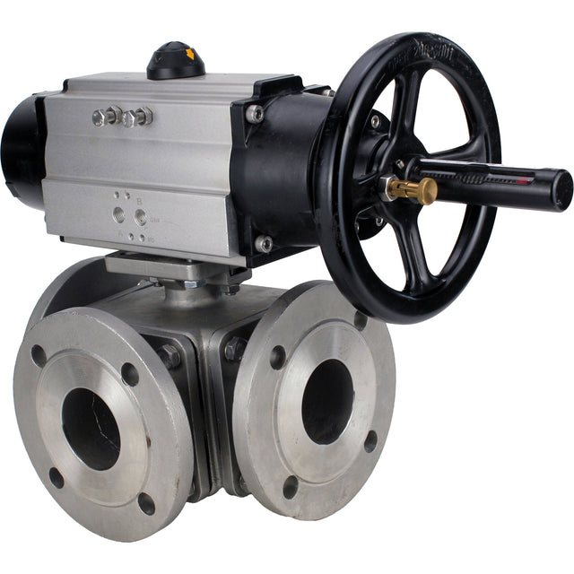 Vannes à boisseau sphérique Elephant BV3232P(4pc)-FP-3WL-F-ISO-H DN100 16 bar passage intégral, à brides, corps - acier inoxydable SS316, bride ISO F10/F12, carré 19x19, avec double actionneur pneumatique PA-DA-105-1 actions
