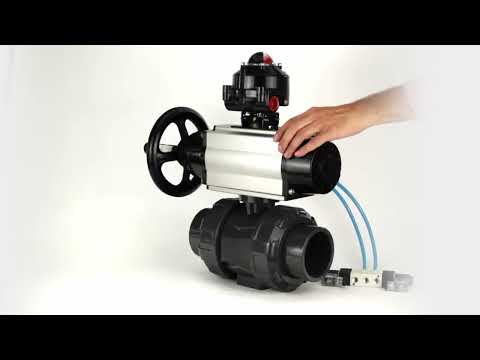 Ball valves Elephant BV4242E-FP-GRM-ISO, body material - UPVC, ball material - UPVC, seal - EPDM, with pneumatic actuator double action PA-DA-105-1, pneumatic distributor 4V320-08 220V and LSU APL-510N EX