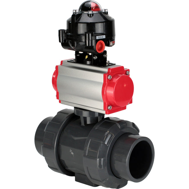 Ball valves Elephant BV4242E-FP-GRM-ISO, body material - UPVC, ball material - UPVC, seal - EPDM, with pneumatic actuator double action PA-DA and LSU APL-510N EX
