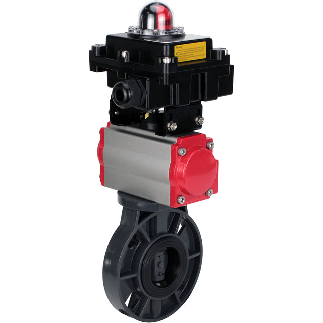 Butterfly valves Elephant WBV4242E-2W-Fb-ISO, body material - UPVC, disc material - UPVC, seal - EPDM, with pneumatic actuator double action PA-DA and LSU APL-410N EX