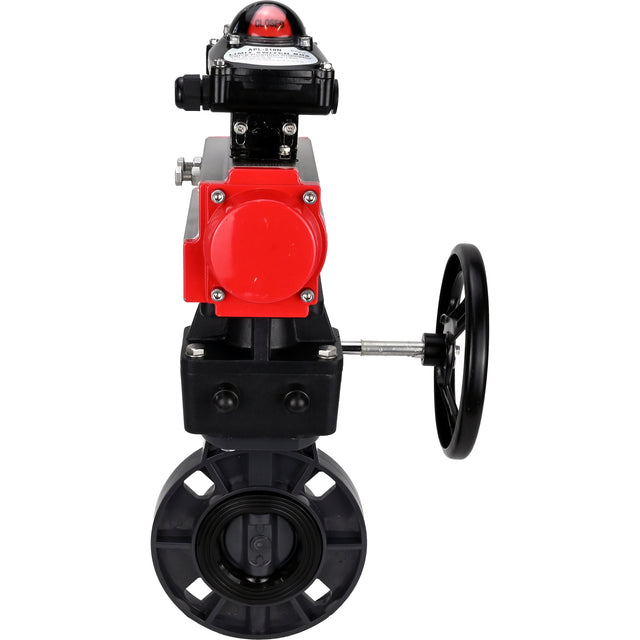 Butterfly valves Elephant WBV4242E-2W-Fb-ISO, body material - UPVC, disc material - UPVC, seal - EPDM, with pneumatic actuator double action PA-DA, LSU APL-210N and handwheel MON