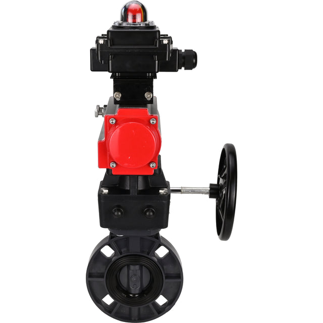 Butterfly valves Elephant WBV4242E-2W-Fb-ISO, body material - UPVC, disc material - UPVC, seal - EPDM, with pneumatic actuator double action PA-DA, LSU APL-410N EX and handwheel MON