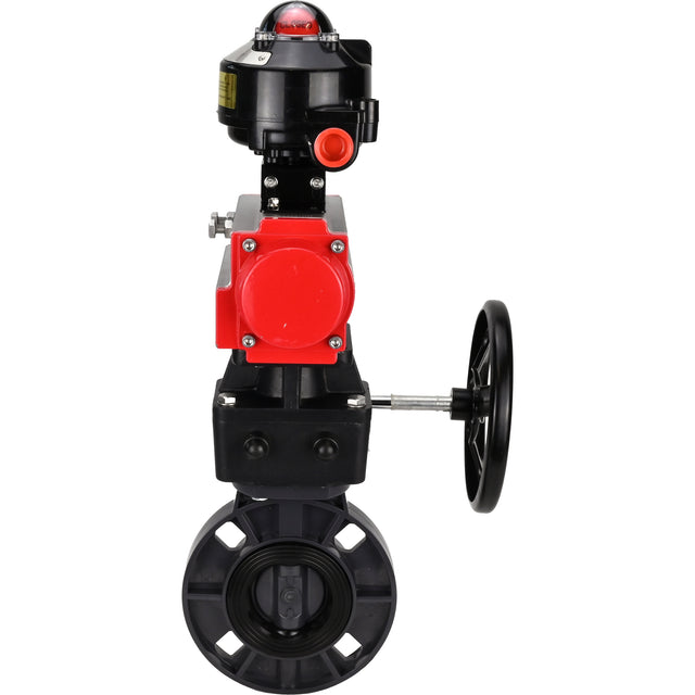 Butterfly valves Elephant WBV4242E-2W-Fb-ISO, body material - UPVC, disc material - UPVC, seal - EPDM, with pneumatic actuator double action PA-DA, LSU APL-510N EX and handwheel MON