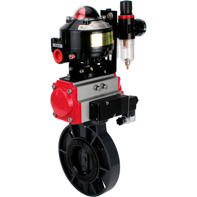 Butterfly valves Elephant WBV4242E-2W-Fb-ISO, body material - UPVC, disc material - UPVC, seal - EPDM, with pneumatic actuator double action PA-DA, pneumatic distributor 4M310-08 NAMUR 220V, LSU APL-510N EX and ATU AFC2000