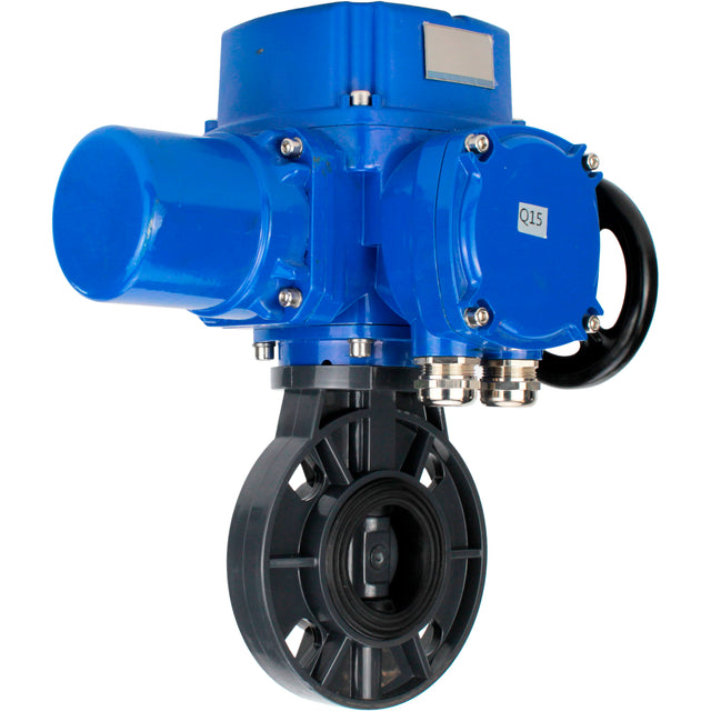 Butterfly valves Elephant WBV4242E-2W-Fb-ISO, body material - UPVC, disc material - UPVC, seal - EPDM, with quarter-turn actuator QT-N-M-O2-220VAC-U1, torque clutch and handwheel