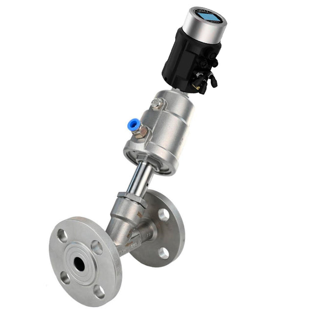 Pneumatic shut-off valves Elephant VSP3232PV-F-1PNC, body - stainless steel SS316, flanged, Y-shaped, with electropneumatic intelligent positioner EIP-1600 (stroke 25-50mm)