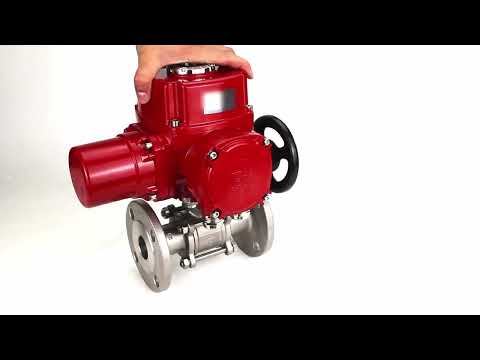 Válvula de bola de acero inoxidable Elephant BVFPT.316.180 de tres piezas, material del cuerpo - acero inoxidable SS316, sello - PTFE, brida, paso completo, actuador eléctrico de cuarto de vuelta Elephant QT-W (M) EX 220 V