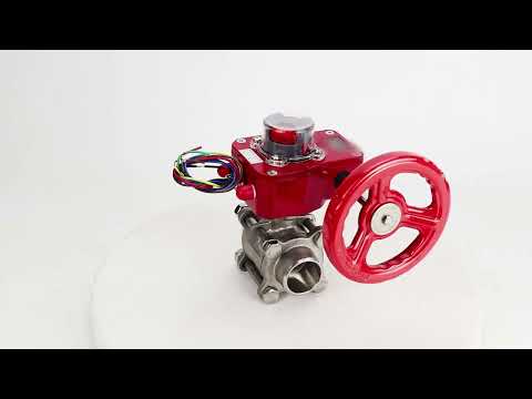 Válvula de bola de acero inoxidable Elephant BVPP 316.200-ISO 914 PSI para soldar, paso completo, material del cuerpo - acero inoxidable AISI 316, con brida ISO y reductor Elephant GBBF con indicador de posición y sensor de retroalimentación