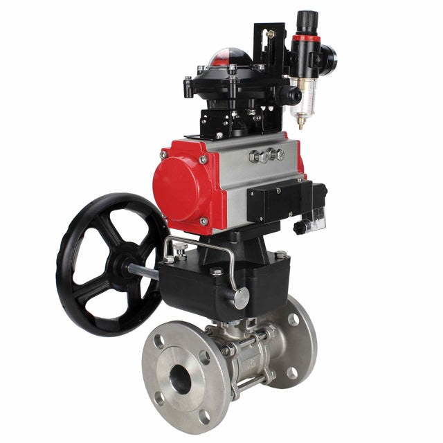 Válvula de bola de acero inoxidable Elephant ksfpt-316-180-da-4m310-110/220v-apl210n-hdm-afc2000, material del cuerpo - acero inoxidable AISI 316, material de la bola - acero inoxidable AISI 316, sello - PTFE, actuador neumático operado