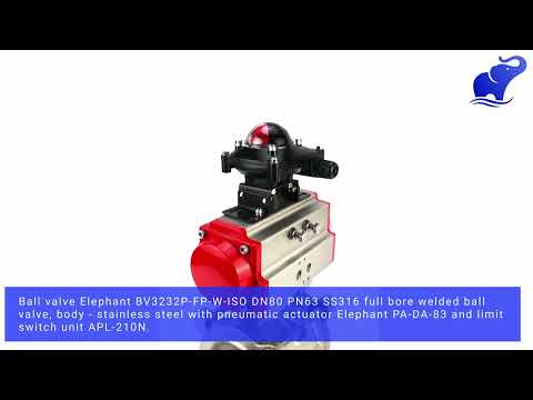Válvula de bola de acero inoxidable Elephant kshpp-316200-da-apl210n, material del cuerpo - acero inoxidable AISI 316, material de la bola - acero inoxidable AISI 316, sello - PTFE, actuador neumático operado