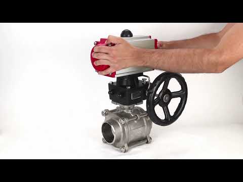 Válvula de bola de acero inoxidable Elephant kshpp-316200-da-hdm, material del cuerpo - acero inoxidable AISI 316, material de la bola - acero inoxidable AISI 316, sello - PTFE, actuador neumático operado