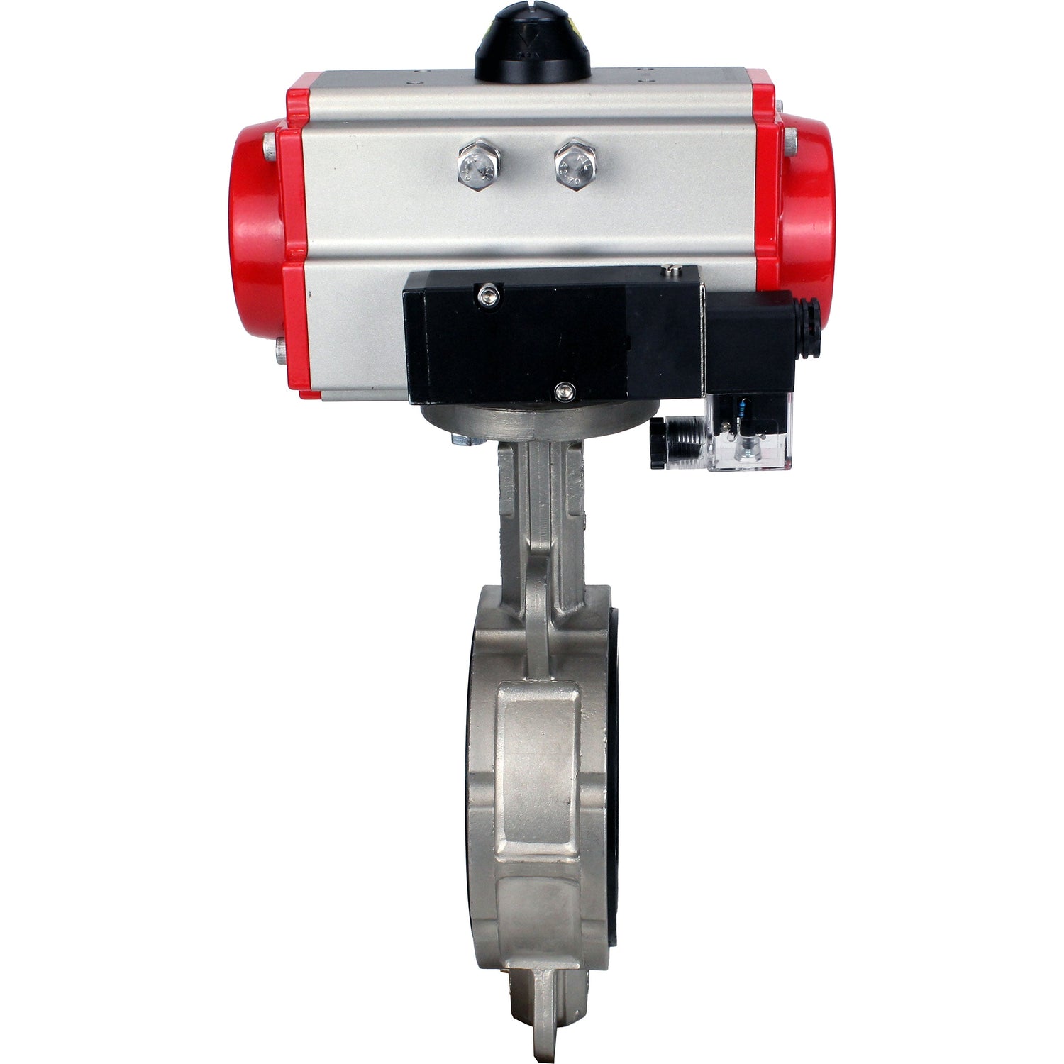 Vanne papillon d'eau Elephant WBV3131N-2W-Fb-H, matériau du corps - Acier inoxydable AISI 304, matériau du disque - Acier inoxydable AISI 304, joint - NBR, actionneur pneumatique PA-SA avec ressorts de rappel, 4M310-08 24V