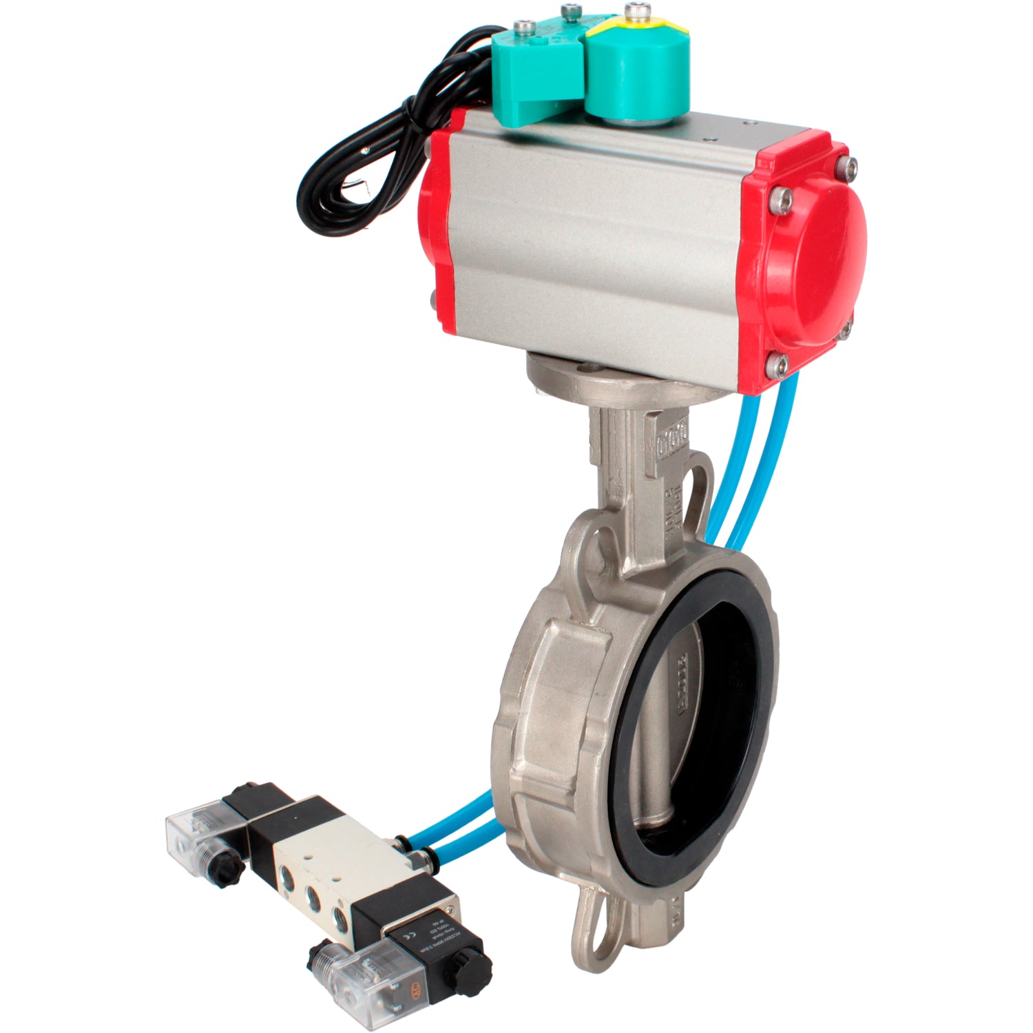 Water Butterfly Valve Elephant WBV3232V-2W-Fb-H DN50-300 16 bar case - 316L stainless steel, disc - 316L stainless steel, seal - Viton, with pneumatic actuator PA-DA-XXX, pneumatic distributor 4V320-08 220V and ALS200D magnetic switch