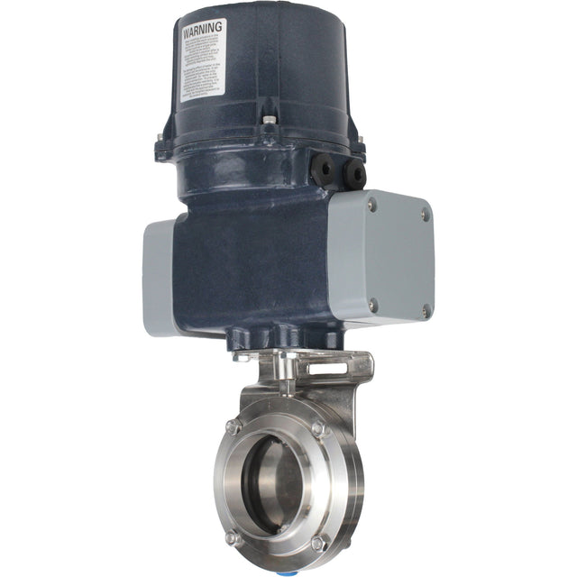 Butterfly valves Elephant WBV3131E-2W-C-H clumpy, body - food grade stainless steel AISI 304, disc - stainless steel AISI 304, seal - EPDM, with electric quarter turn actuator Elephant QTSA-N-EM-O0-220VAC
