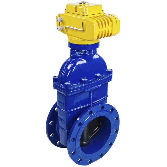 Válvula de compuerta de cuña 30c939r azul Elephant-GGG50-EPDM-F4-BLUE PSI145 clase 150 T=230-248°F conexión de brida, con cuña revestida de caucho EPDM, actuador eléctrico Elephant MT-110/220 110/220V